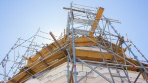 Estructuras metálicas utilizadas para trabajos en altura que brindan estabilidad y seguridad al personal durante actividades de construcción, mantenimiento o rehabilitación de obra.